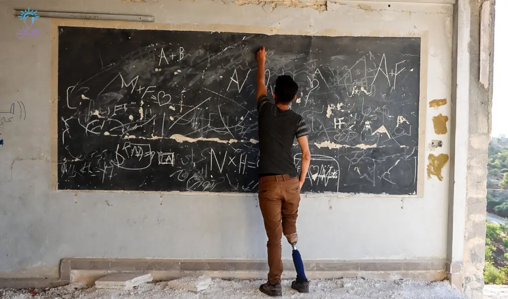 A student named Ahmed walks with a prosthesis, a stark reminder of that fateful day 12 years ago when his school was bombed, forcing him to flee his home, the horrors of war stealing one of his legs. Yet, even in the face of such adversity, he never let despair darken his path. Armed with a pen and fueled by sheer determination, he continued his educational journey, hoping to rewrite his sorrowful narrative and envision a brighter, more promising future.