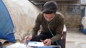في زاوية صغيرة من غرفة دراسية بسيطة يجلس طالب طموح بهمّة عالية وحلم كبير ولكن احتياجاته الدراسية ونفقاته التي أثقلت كاهله؛ تقف عائقاً يحول بينه